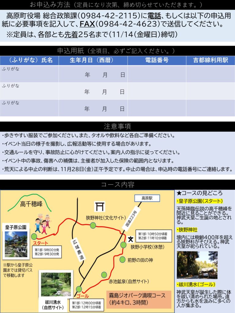 申込先:JR吉都線利用促進協議会吉都線ウォーク担当(高原町総合政策課)