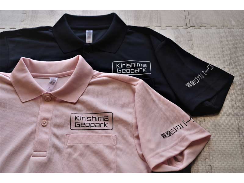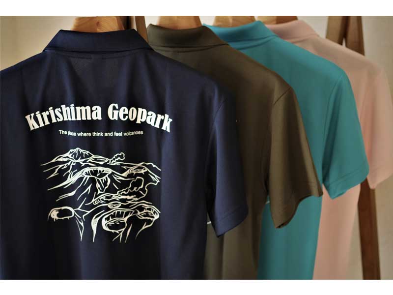 たくさんの火山が重なり火口や火口湖が密集する霧島山をデザインした霧島ジオパークオリジナルポロシャツ
